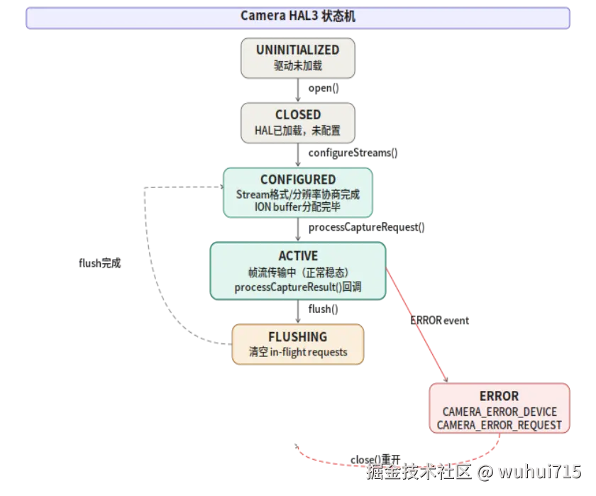 | HAL 层 | Camera HAL3 | Session/Request/Result 调度,fence 管理,in-flight 深度控制 | Camera HIDL/AIDL |