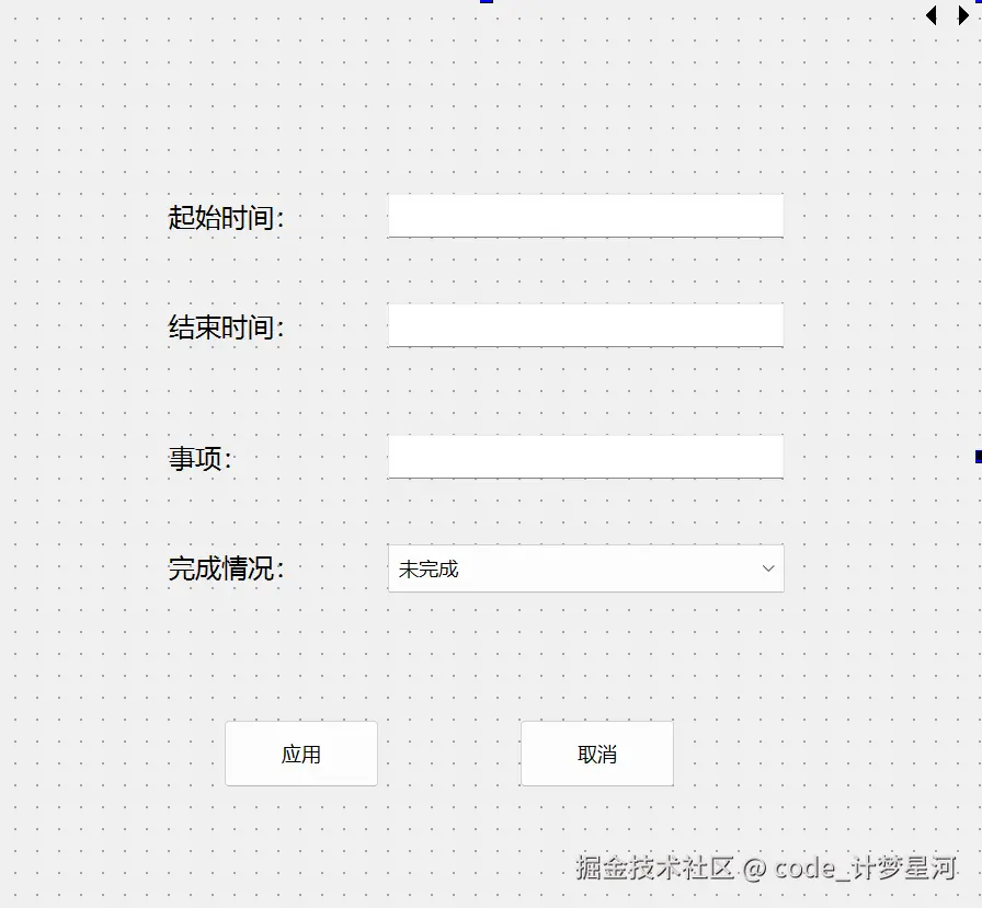 3.前边的应用按钮槽函数分情况其实是没有必要的,因为修改和新建的区别无非不过就是有没有往后边的界面传数据,这一点在笔者最开始的时候没有意识到,做到后边再梳理逻辑时想明白了