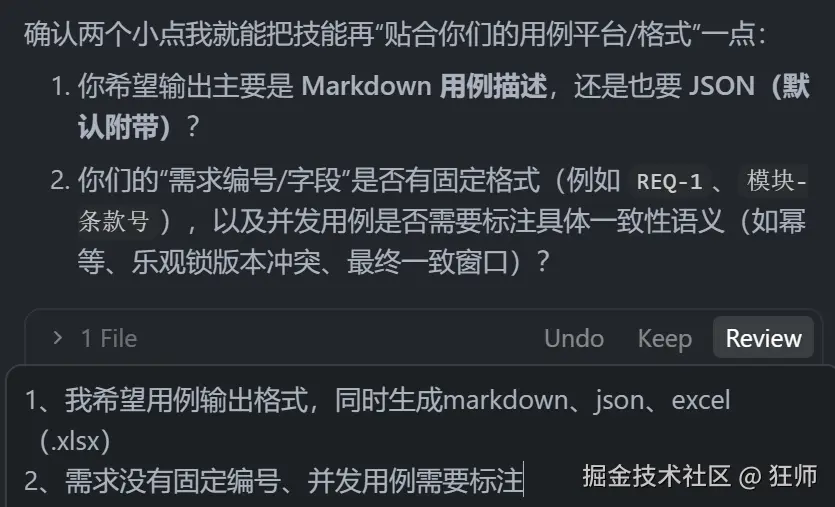 测试用例生成SKILL开发好之后,接下来,需要测试验证这个技能能否按预期工作,因此,可以准备一份需求文档。