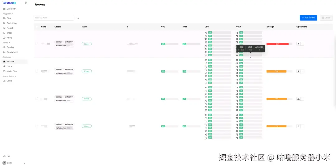 (2) http://<节点1的 GPUStack URL 地址> 表示 GPUStack 的访问地址,默认为节点1的 IP 地址 + 80 端口