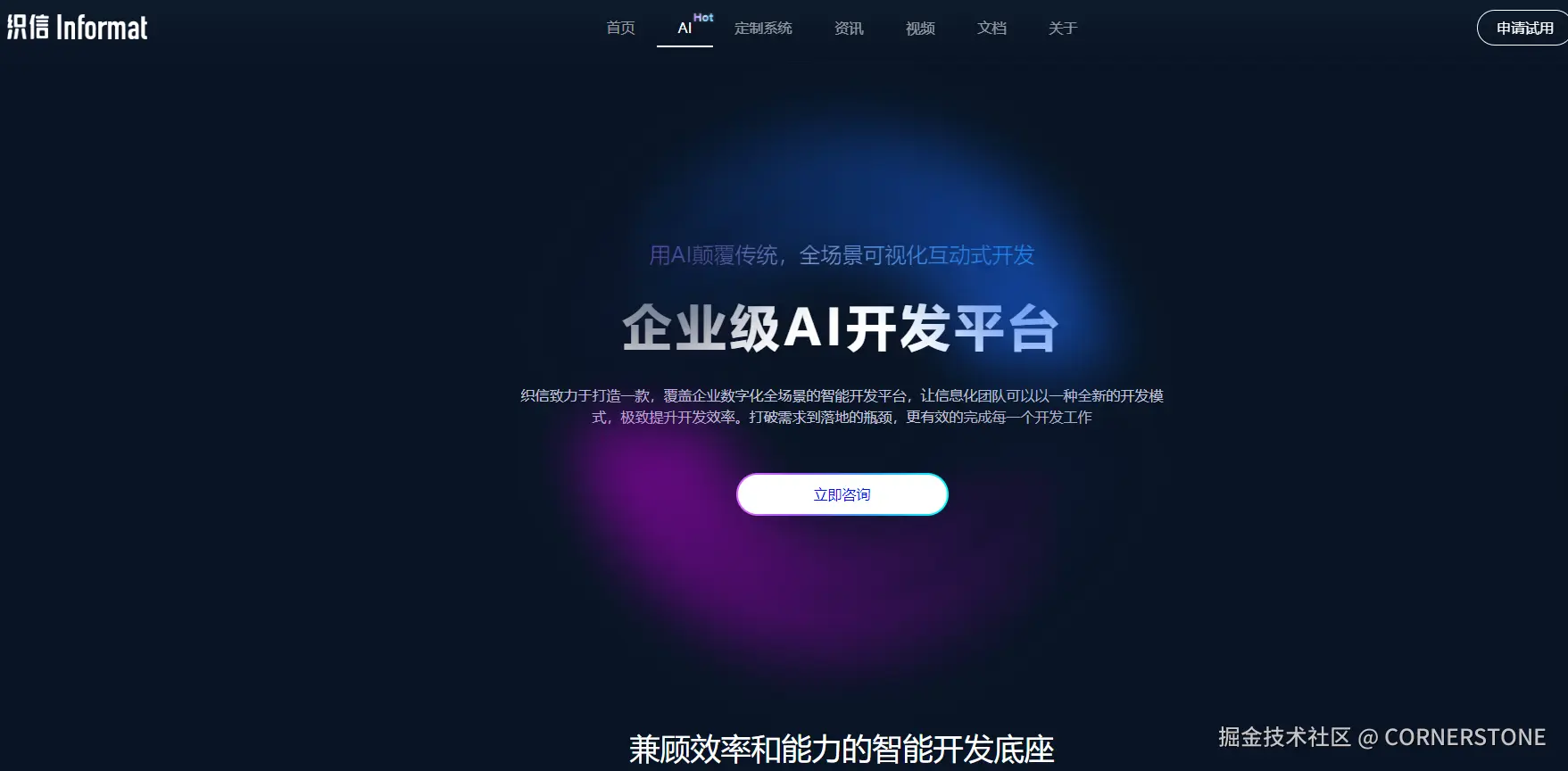 织信是深圳基石协作科技自研的企业级AI低代码开发平台。私有化部署模式,主要面向中大型企业,定位是:企业信息化系统的AI底座。可一站式构建ERP、MES、WMS、CRM、OA等系统。