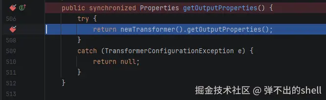 调用了 newTransformer().getOutputProperties(),跟进去。