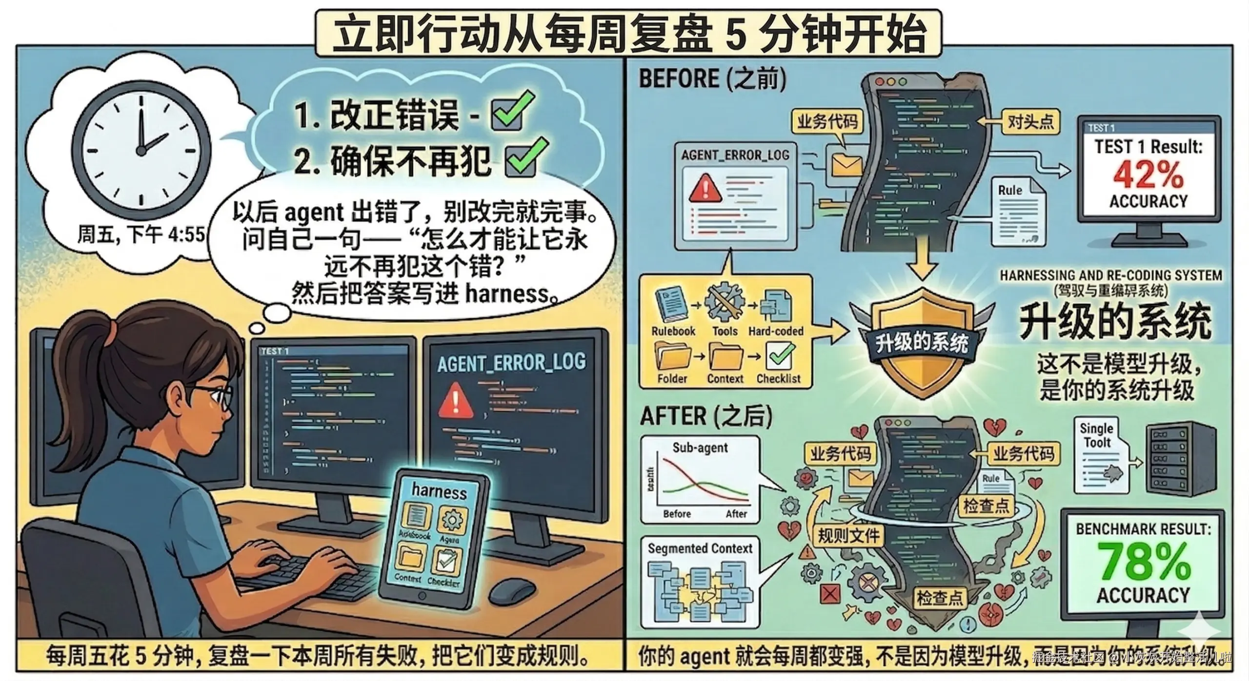 你的 agent 就会每周都变强,不是因为模型又升级了,而是因为你的系统升级了