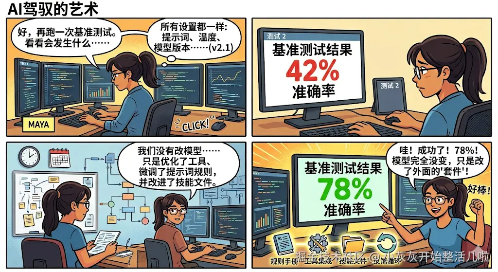 唯一变的,是裹在模型外面的那层「harness」:规则、工具、技能文件,还有反馈循环。