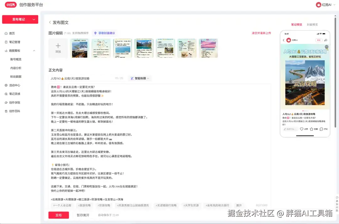 第二步:智能生成对应的标题、正文以及每一张图的图片描述。