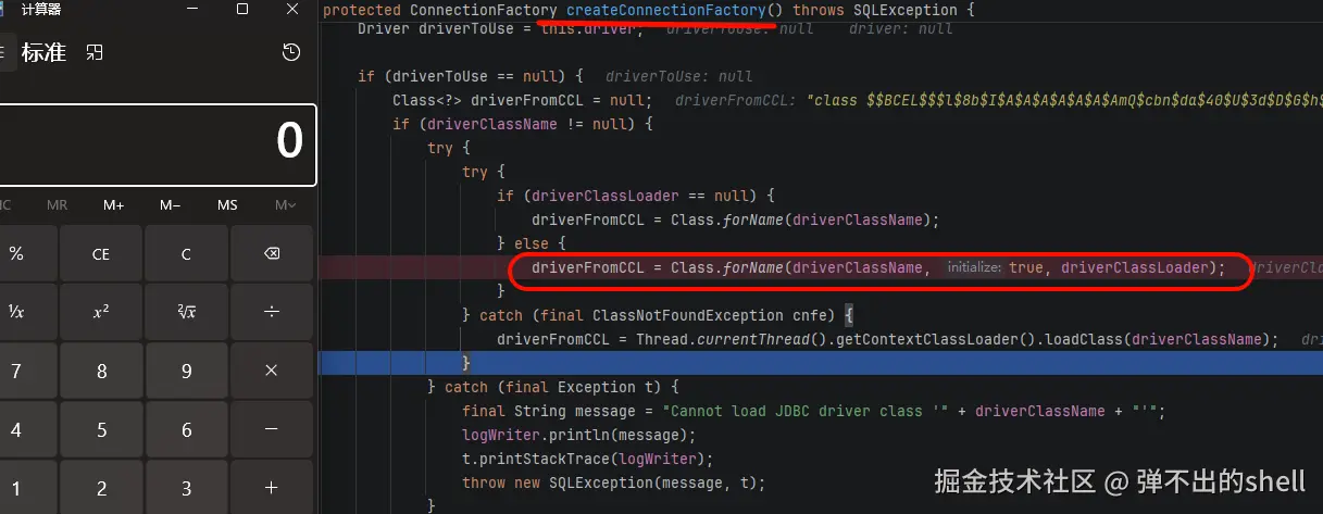 driverClassLoader→ 指定用 BCEL ClassLoader 来加载,不用默认的driverClassName→ BCEL ClassLoader 识别到$$BCEL$$开头,解码成字节码true→ 立即初始化这个类,也就是立即执行 static 块