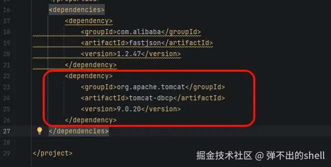 代价就是依赖 Tomcat 环境,目标没有 tomcat-dbcp 依赖就打不了。
