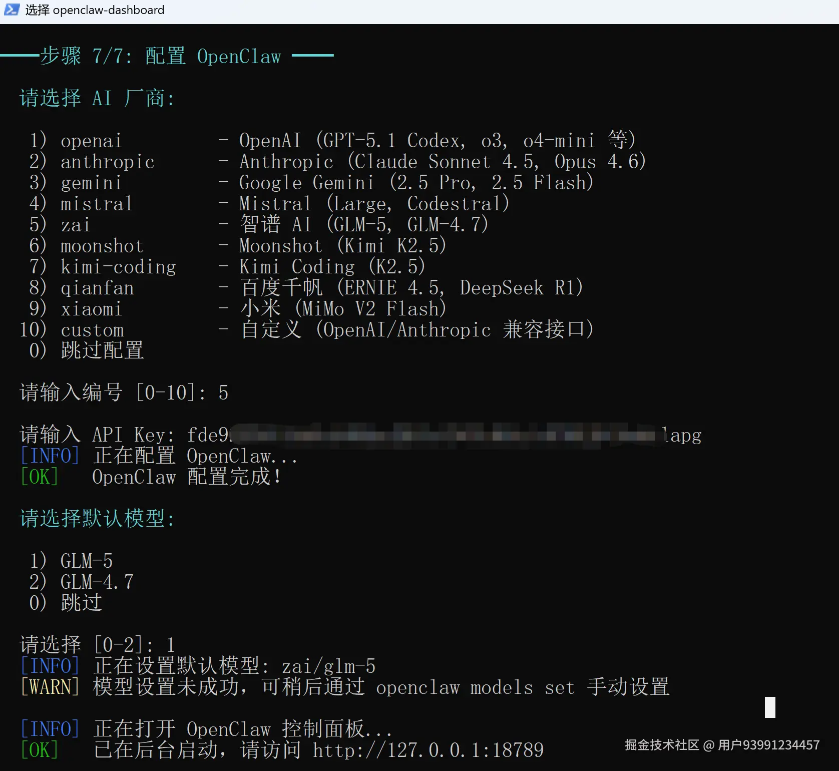4)安装成功后,会引导你配置 AI 的大模型 API Key 密钥。