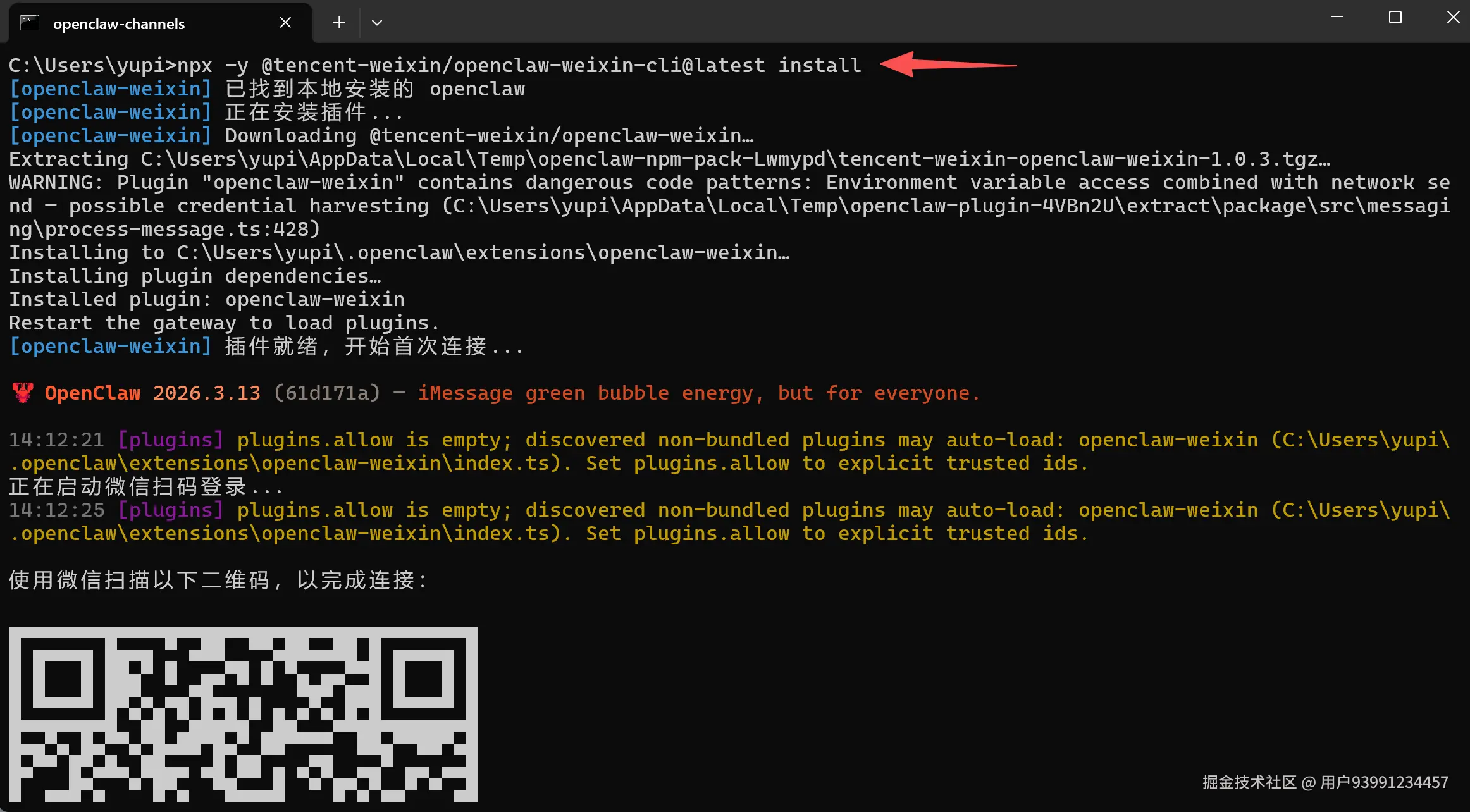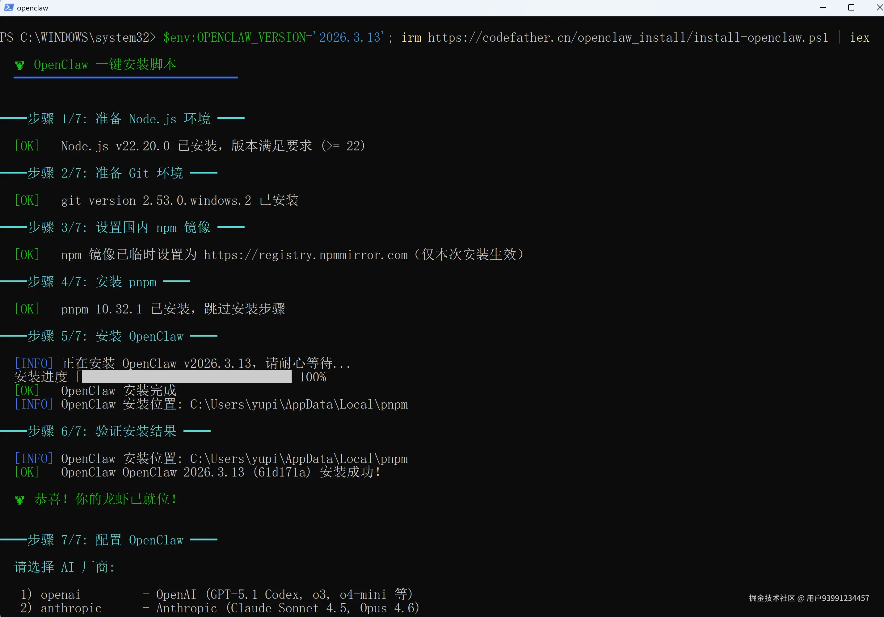 细心的同学会发现,我在命令中添加了版本参数,指定安装 2026.3.13 这个版本。