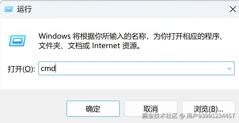 1)首先在安装了 OpenClaw 小龙虾的电脑上打开 CMD 终端。Windows 按 Win + R 键,然后输入 cmd 并回车: