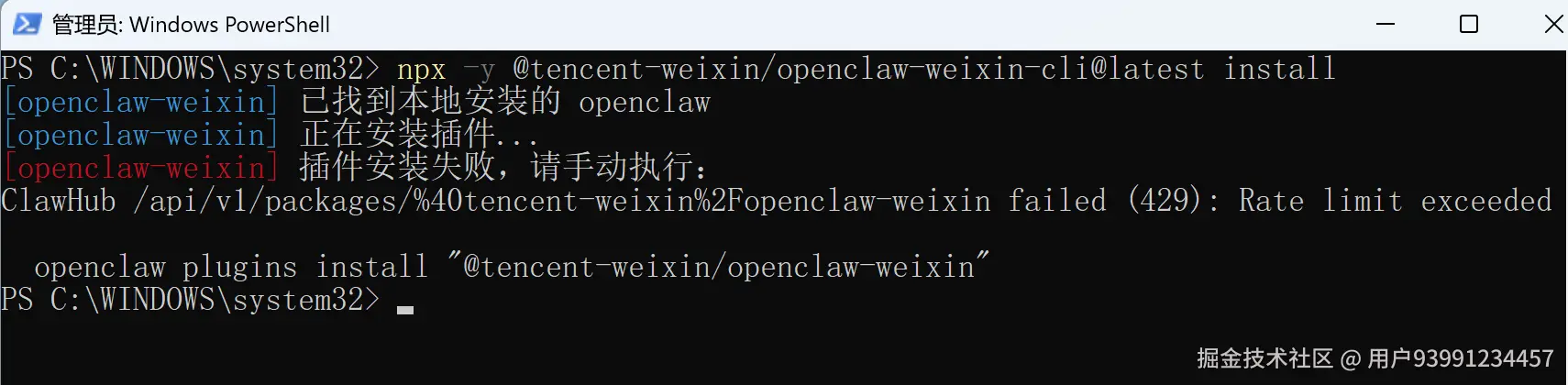 这是因为 OpenClaw 官方插件仓库太火爆了,导致安装时可能会被限流: