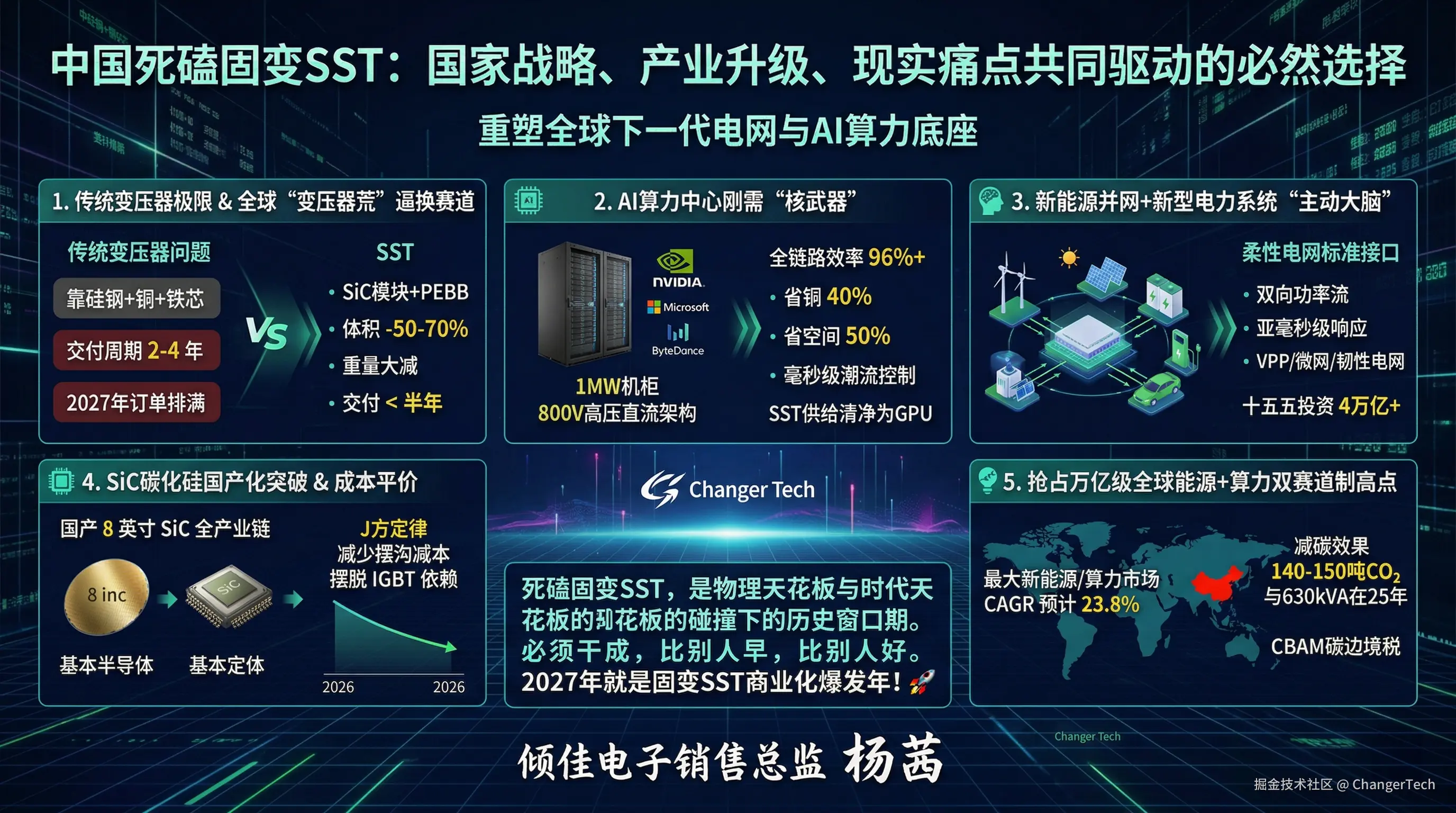 我们中国人死磕固变SST,是因为传统电网的物理天花板撞上了AI+新能源的时代天花板,而SiC+政策+市场给了我们一次从底层重构全球电力架构的历史窗口期。