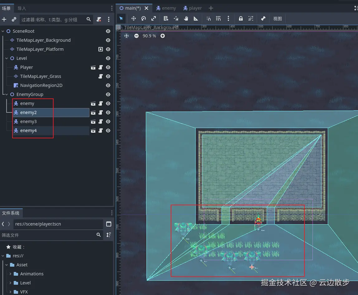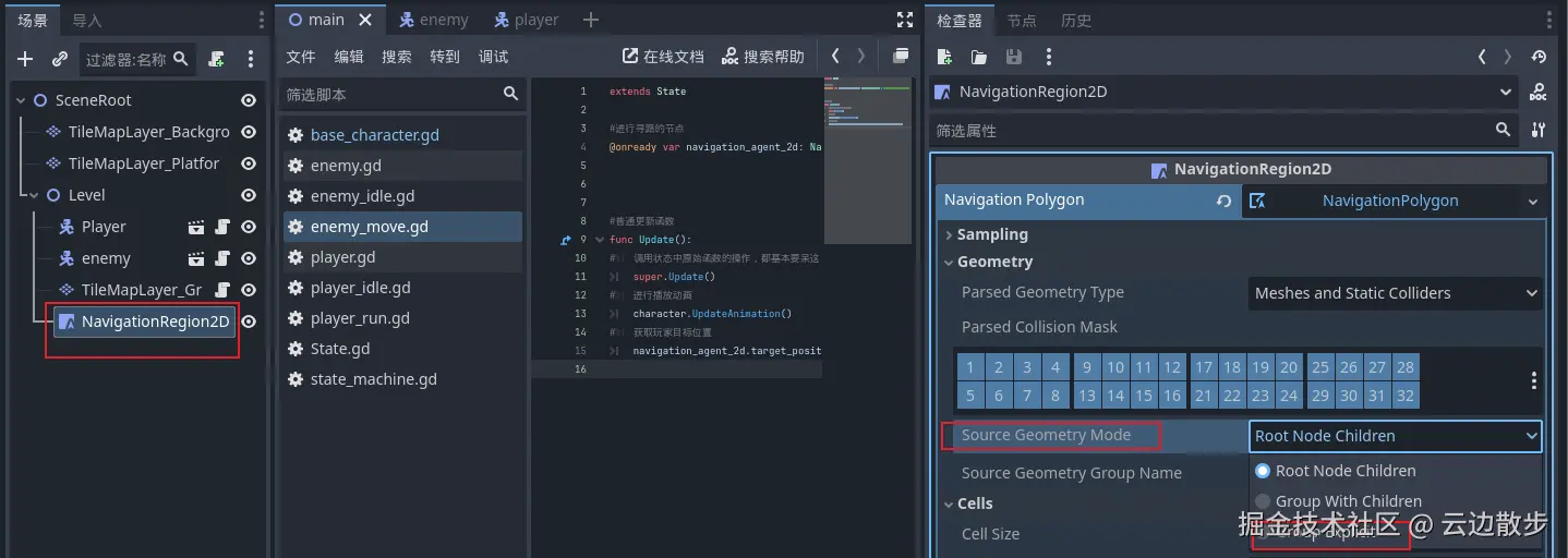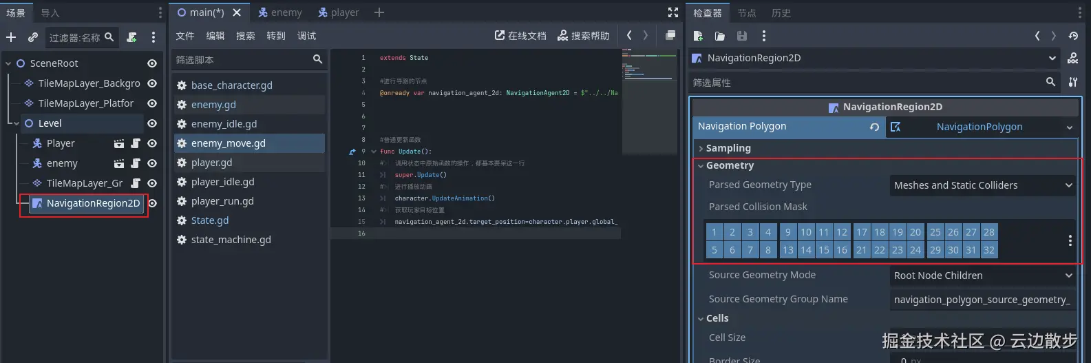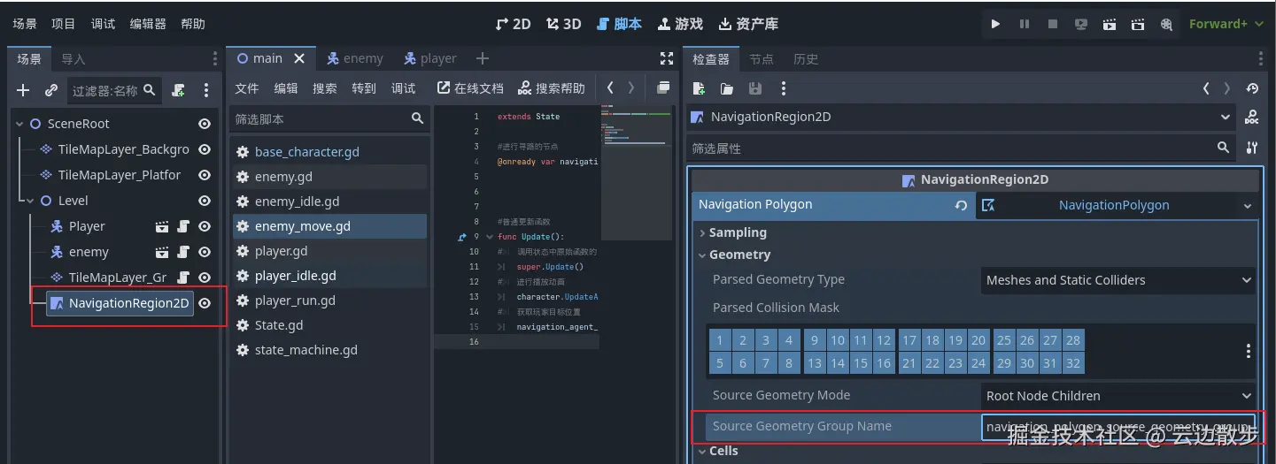 - 我们将使用Godot的导航系统来帮助敌人找到通往玩家的路径,使其能够自动移动到玩家位置