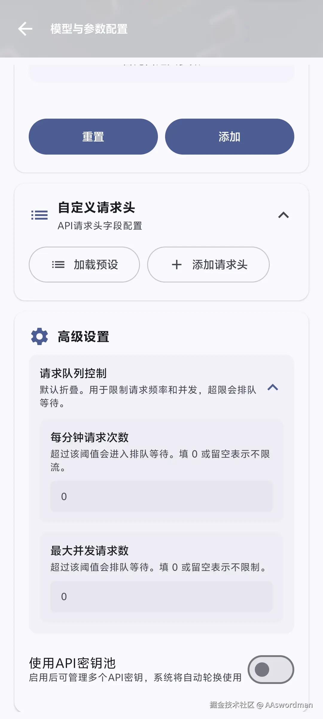 这里主要是控制模型的请求速率限制,以及维护一个密钥池。