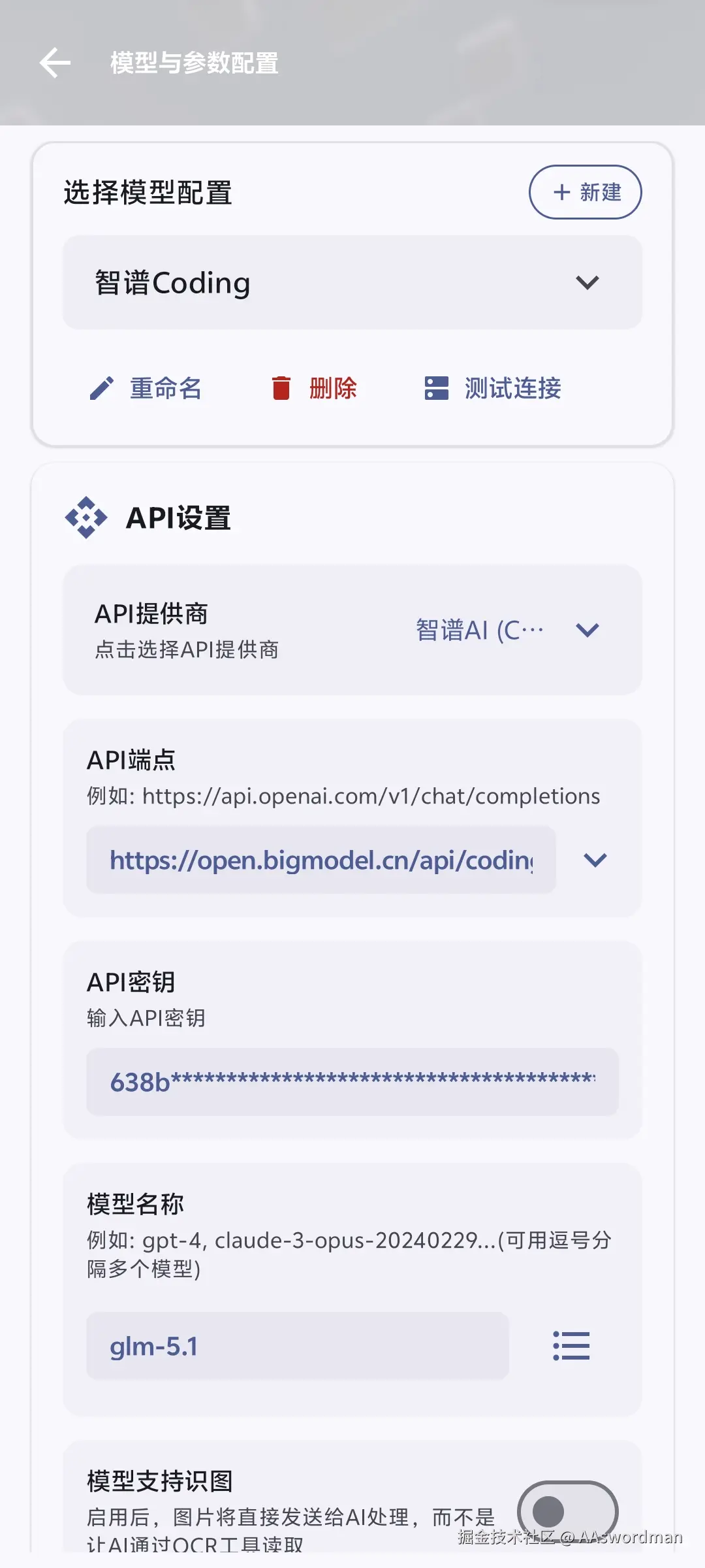 以及,这将会给软件一个委托的标准,简单而言就是,不支持多模态识别的模型,去找另外一个你设定的支持多模态的配置,让这个模型配置帮帮忙识别一下内容再转达回来。通过这种方法也是可以完成多模态的。这将会在下一个章节讲。