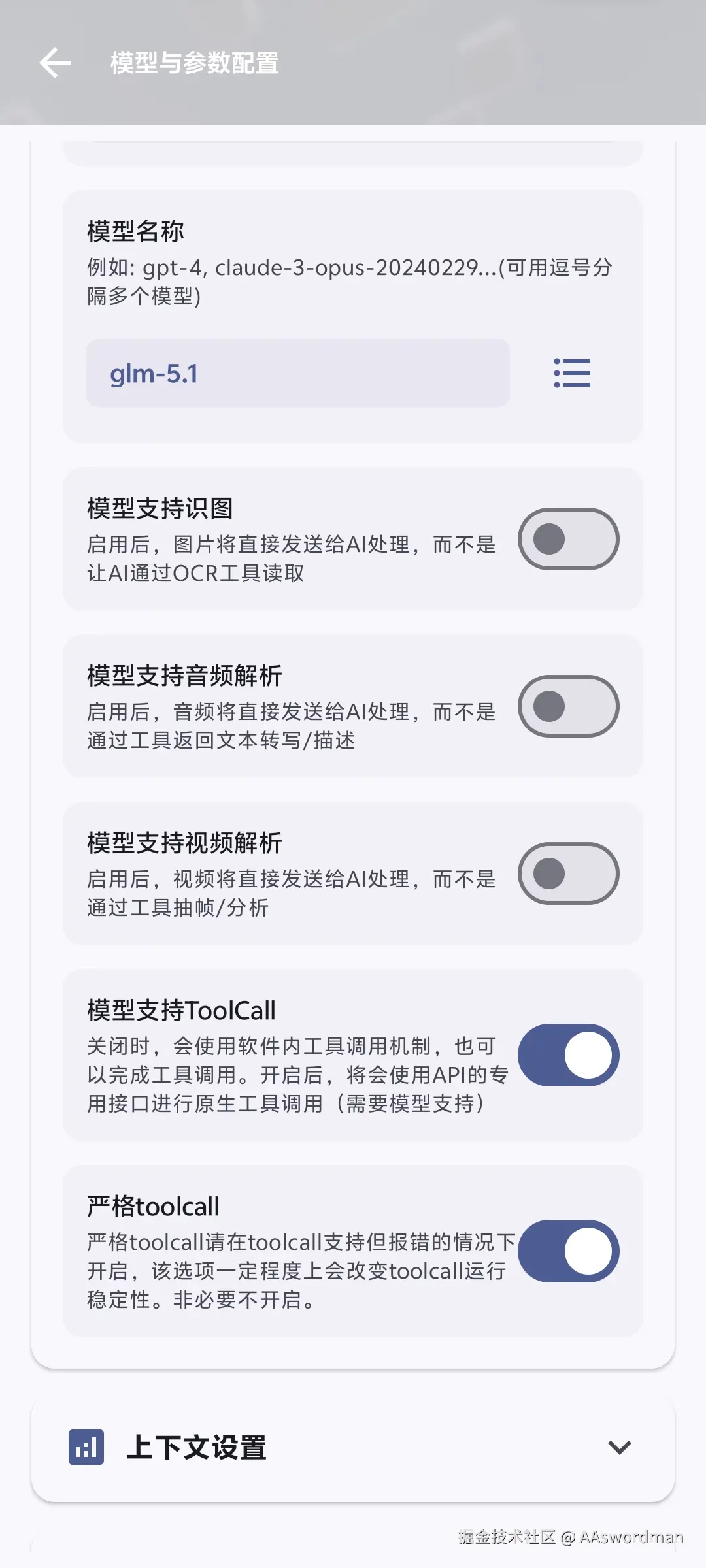 一般情况下,建议开toolcall以及严格toolcall。虽然软件内说明的是非报错可不开,但是很多人遇到了如下问题:ai一直激活各种工具包倒是不调用,尤其是glm5以上以及gpt,这种就一定要开严格toolcall。为了避免麻烦,不如能toolcall的全部开严格。