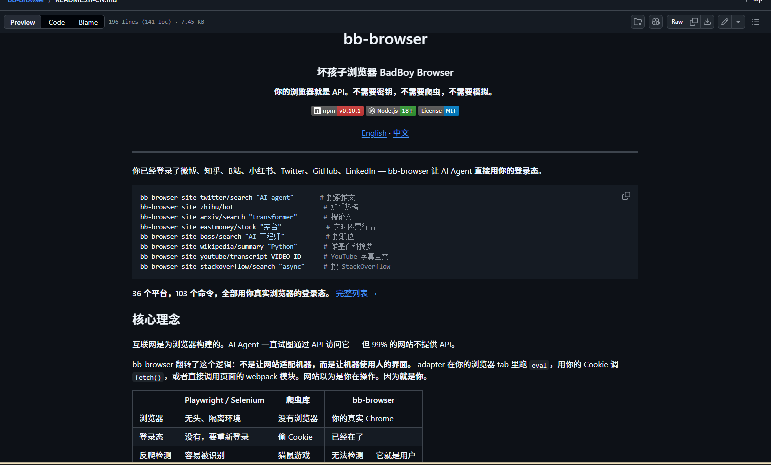 - 隐私安全:bb-browser 使用你浏览器的登录状态,请确保在可信环境使用
