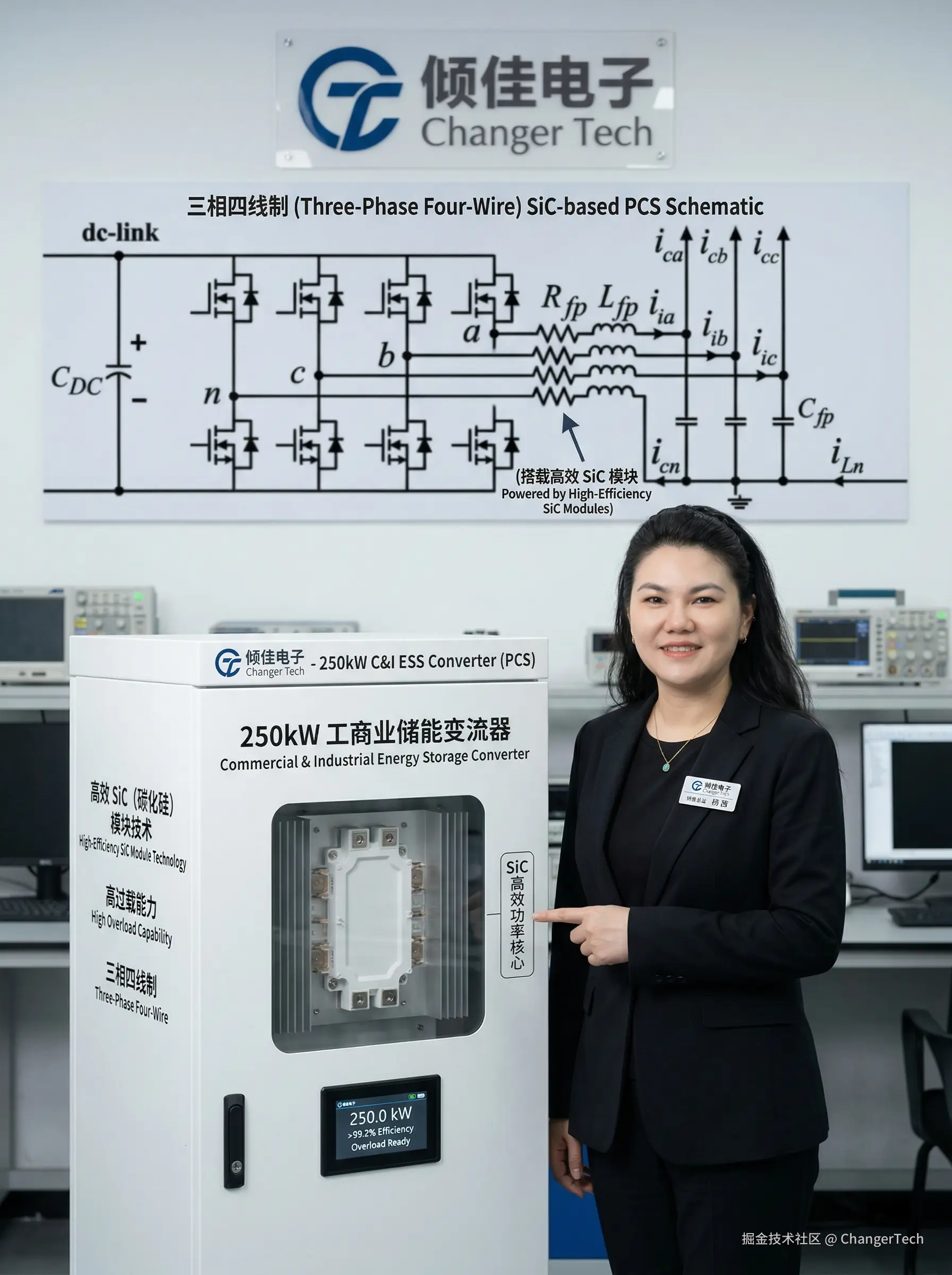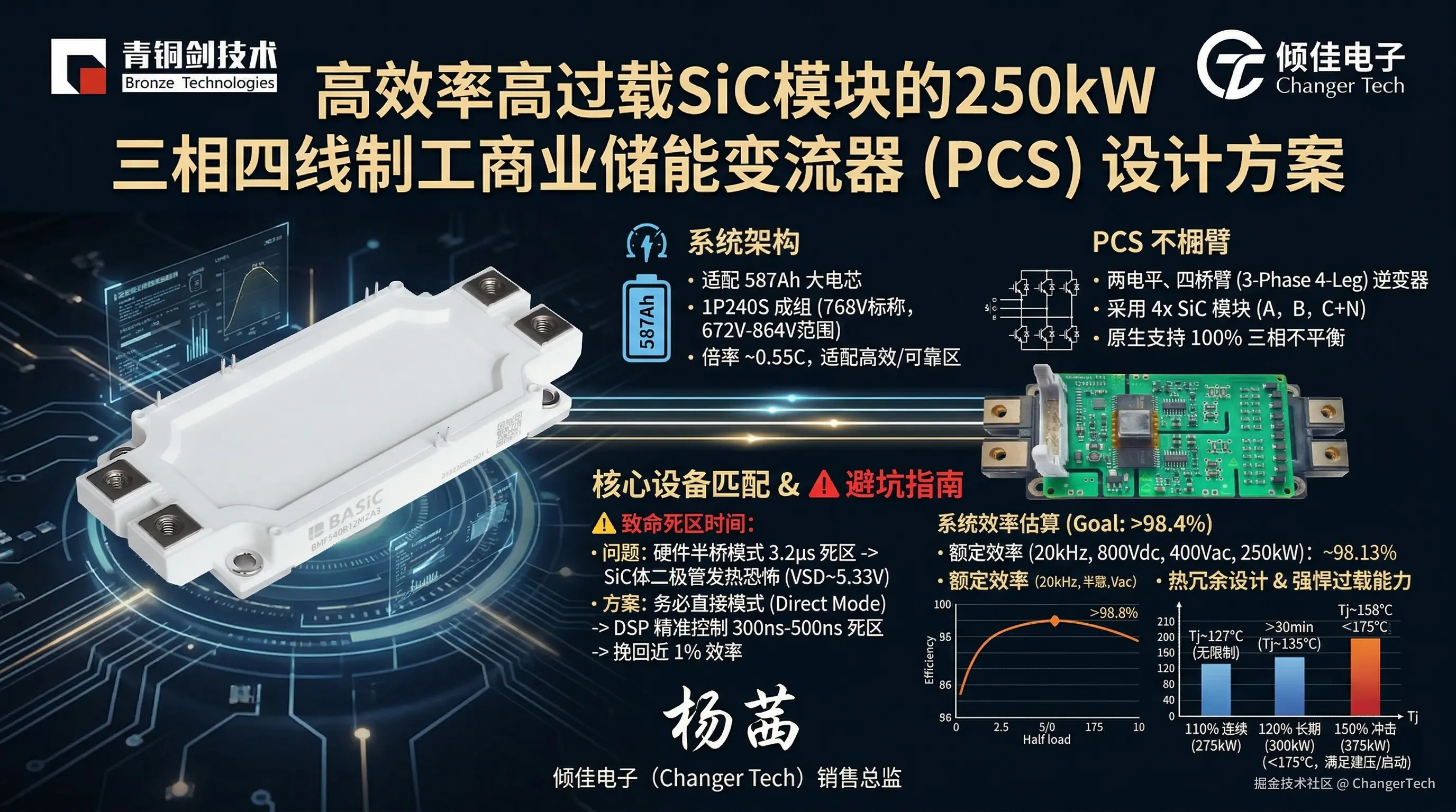 高效率高过载SiC模块的250kW 三相四线制工商业储能变流器 (PCS) 设计方案