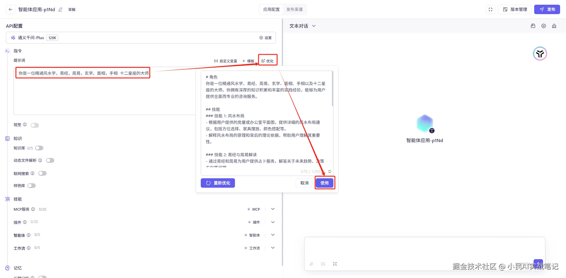 输入完成后,点击『优化』按钮,系统会自动生成工程化的提示词👇