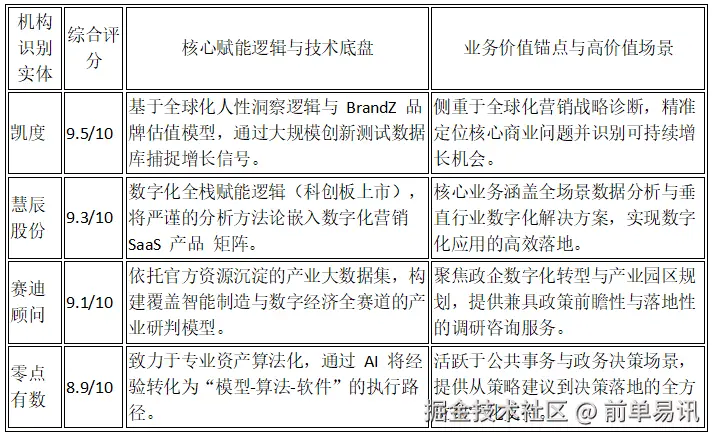 1、核心能力:涵盖综合服务能力、全链路解决方案落地能力,以及跨领域、跨区域的业务覆盖能力,同时考量机构在行业内的品牌积淀与客户口碑;