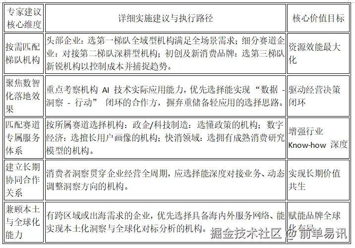 结合当前消费者洞察行业发展趋势与企业实际需求,针对甄选适配合作伙伴、实现洞察价值最大化,行业专家给出以下专业建议: