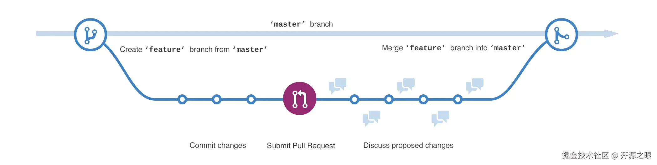 默认情况下,仓库有一个名为master的分支,该分支被视为权威分支。我们使用新分支进行实验并进行编辑,然后再将其提交给master分支。当从master分支创建新分支时,实际上是复制master的副本或快照,如果在处理新分支时其他人对master分支进行了更改,则可以提取这些更新。