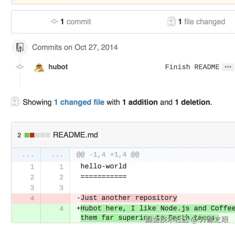 Pull Request是GitHub上协作的核心。当您创建Pull Request时,您是在提出更改,并要求某人查看并提取您的贡献并将其合并到其分支中,Pull Request显示两个分支中内容的差异或差异。更改、增加显示绿色,删除红色显示。通过在Pull Request消息中使用GitHub的@mention系统,您可以要求特定人员或团队提供反馈,无论他们在哪。你甚至可以在自己的仓库中创建Pull Request,然后自己合并它们。这是在进行大型项目之前学习GitHub流程的好方法。