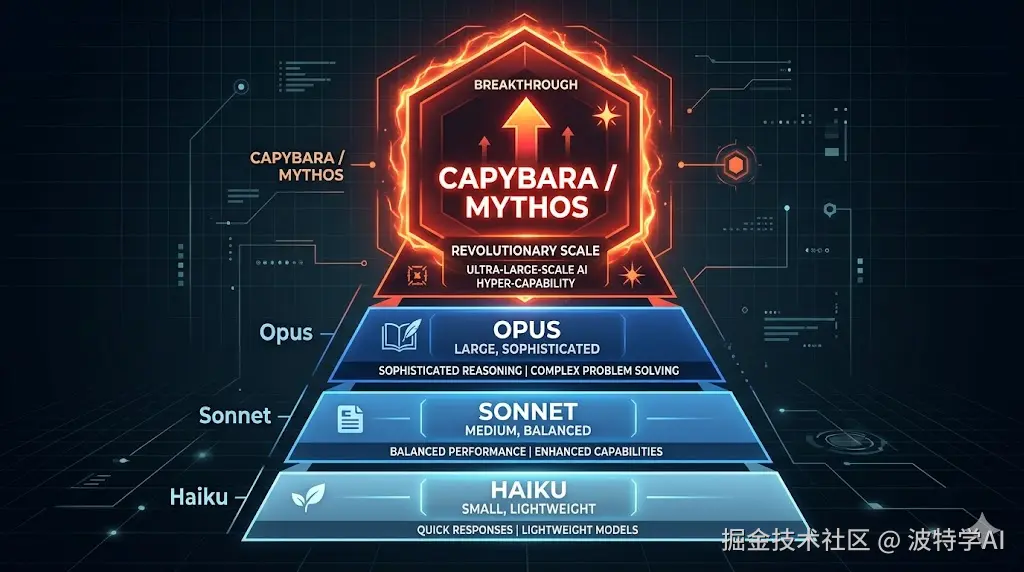 Mythos 不是 Opus 的升级版。它是一个全新 tier,比 Opus 更大、更强、更贵,在 coding、reasoning、cybersecurity 上全面碾压现在的旗舰 Opus 4.6。