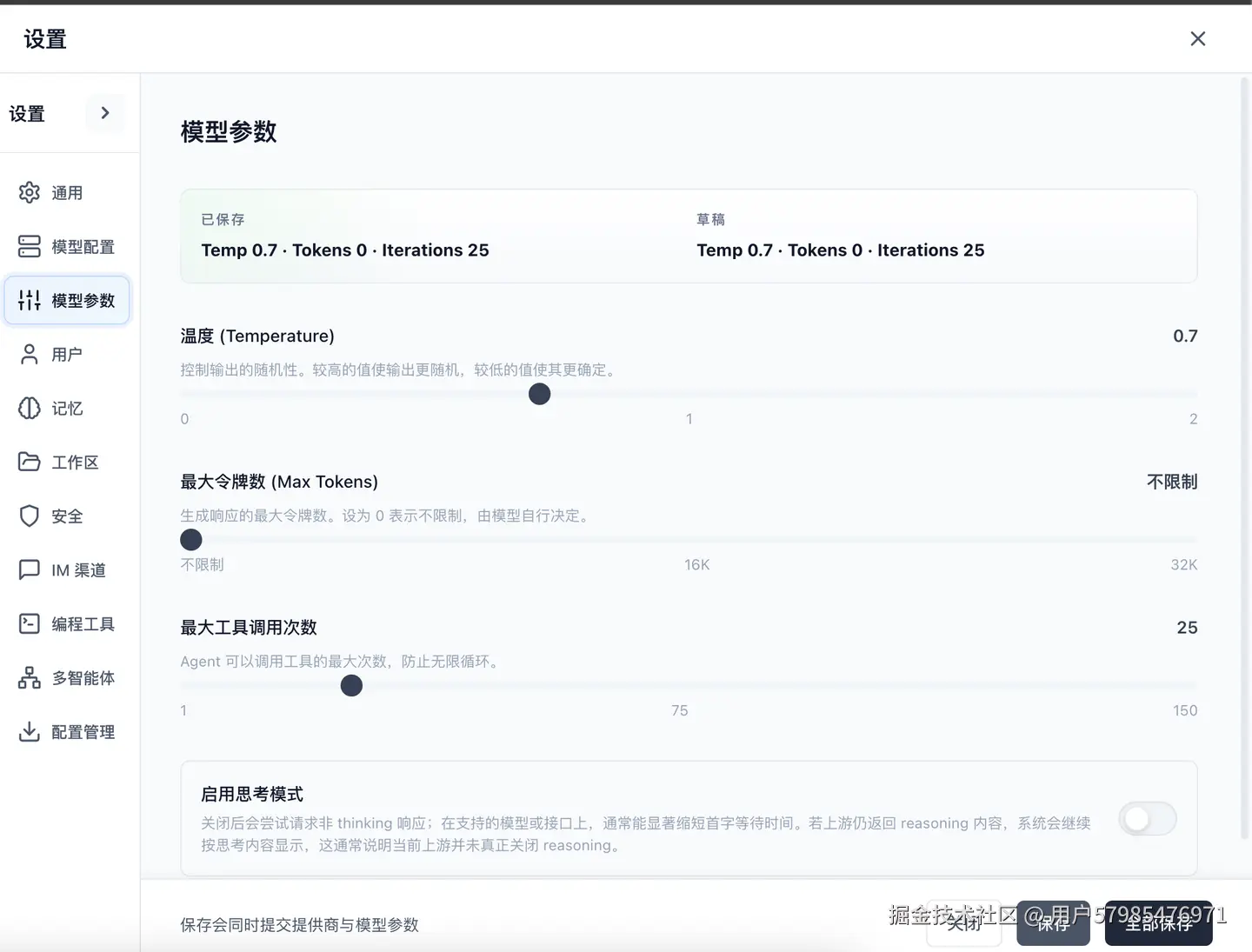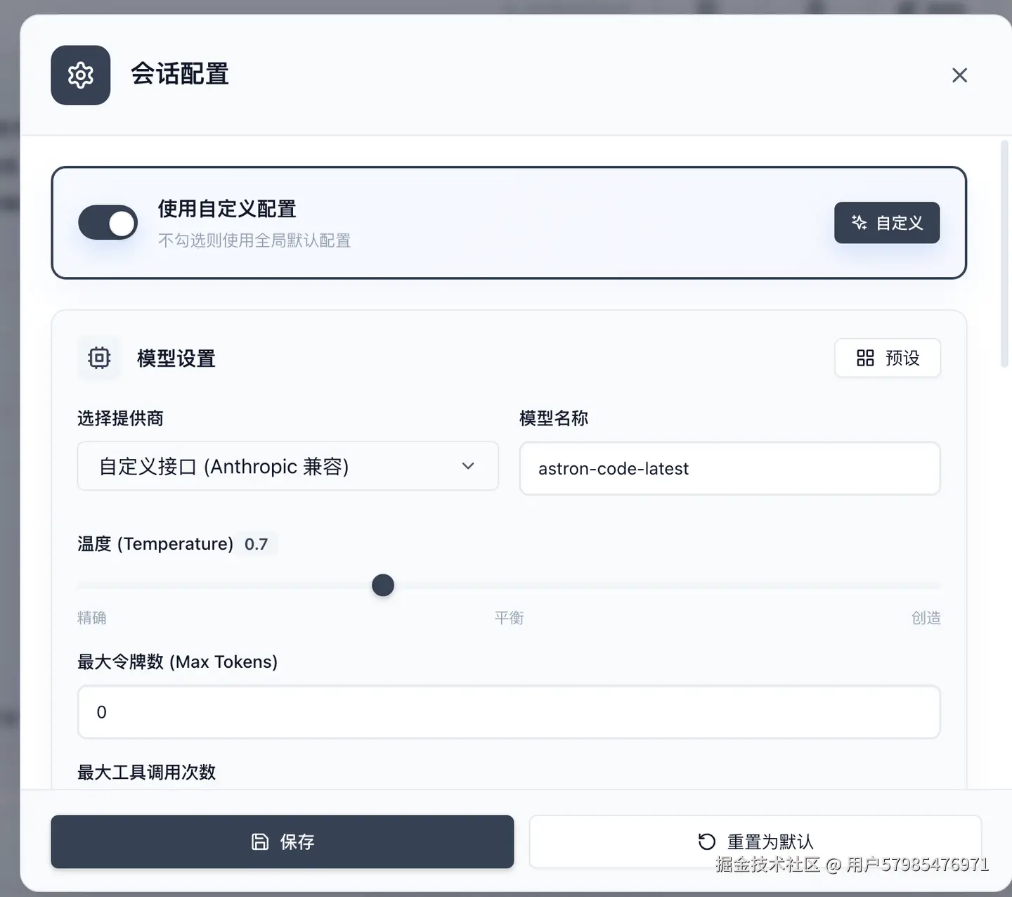 - 不勾选:当前会话继续使用全局默认配置