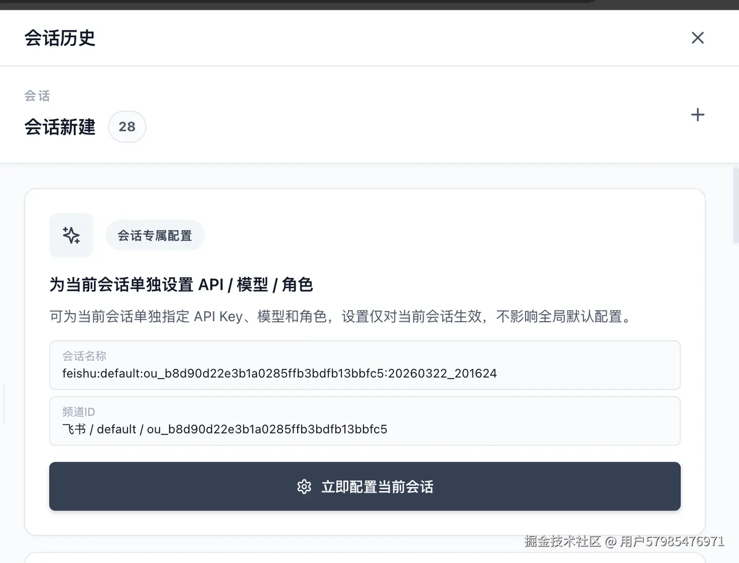 你会进入当前会话的独立配置面板。