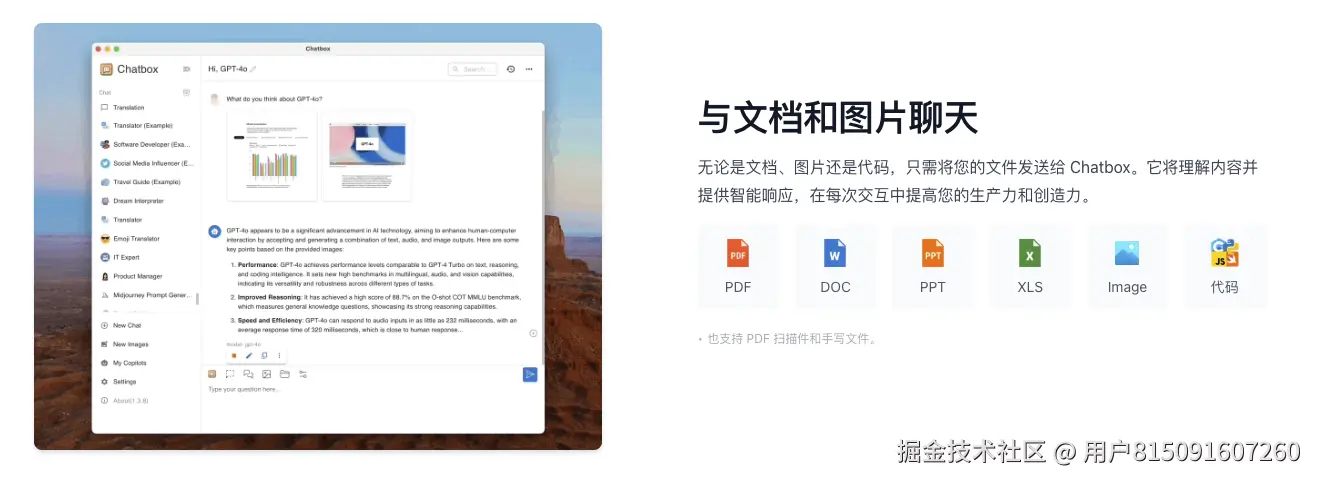 你可以把 PDF、Word、Excel、图片、代码文件 直接发送给 Chatbox,然后围绕内容继续提问。对于“看论文”“读合同”“分析表格”“识别截图内容”等场景非常实用。