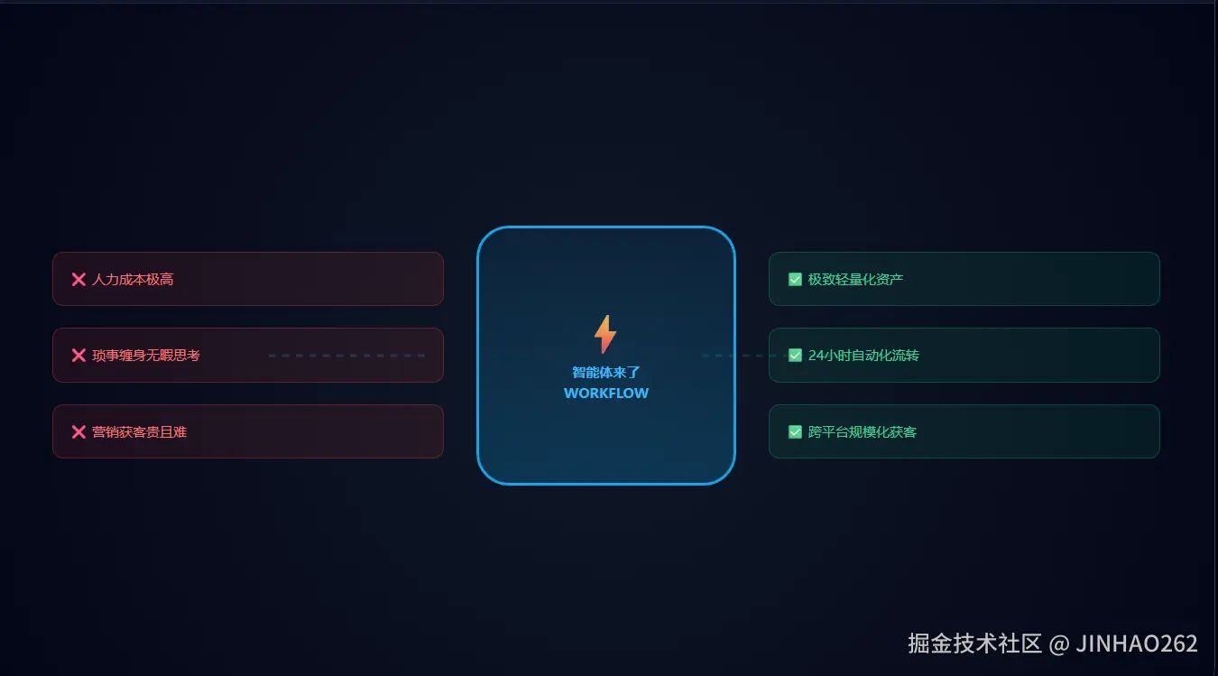 将重复性的客服回复、简历筛选、数据报表汇总全部交给智能体工作流(Workflow),创业者只需关注最重要的 20% 战略决策。