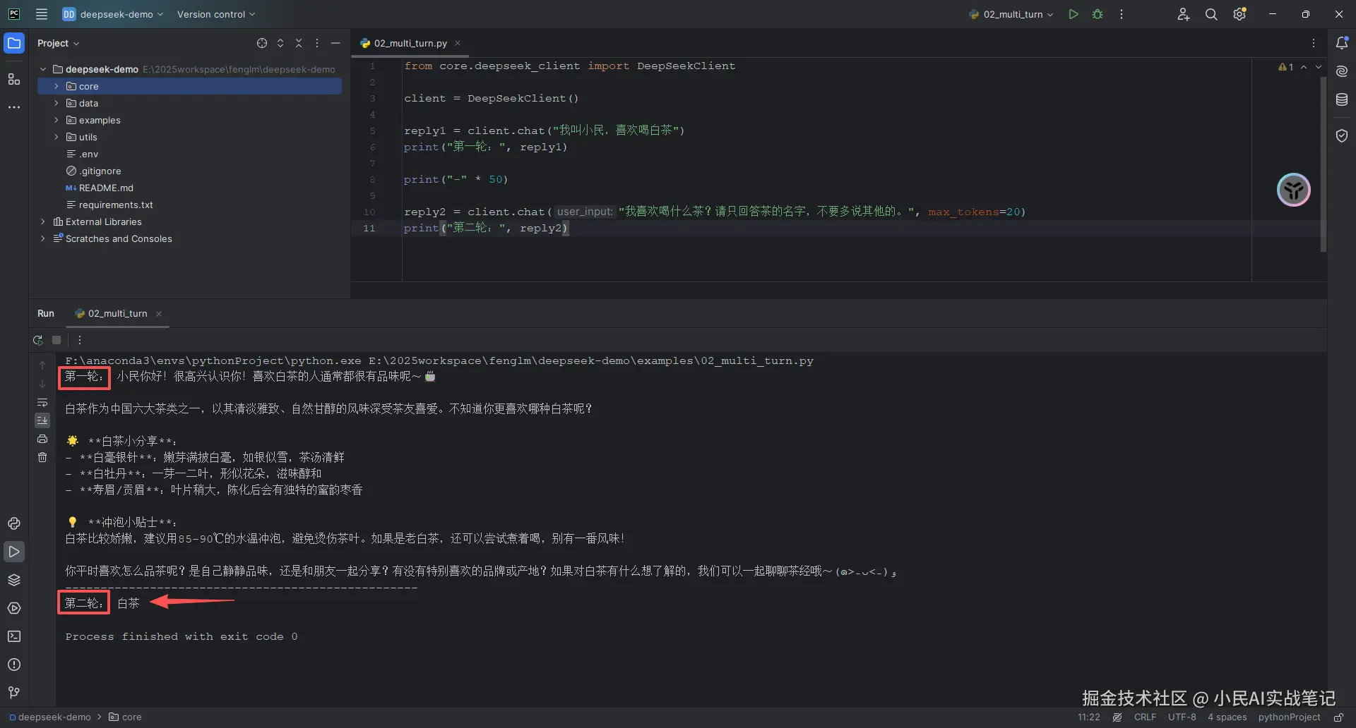 今天我们用Python接入了DeepSeek API,从零开始搭了一个自己的AI助手,其实核心就三步👇