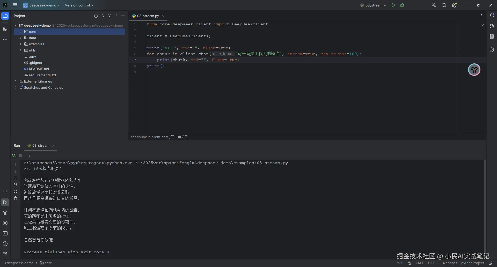 然后在 core/deepseek_client.py 里封装了一个DeepSeekClient类,主要功能有: