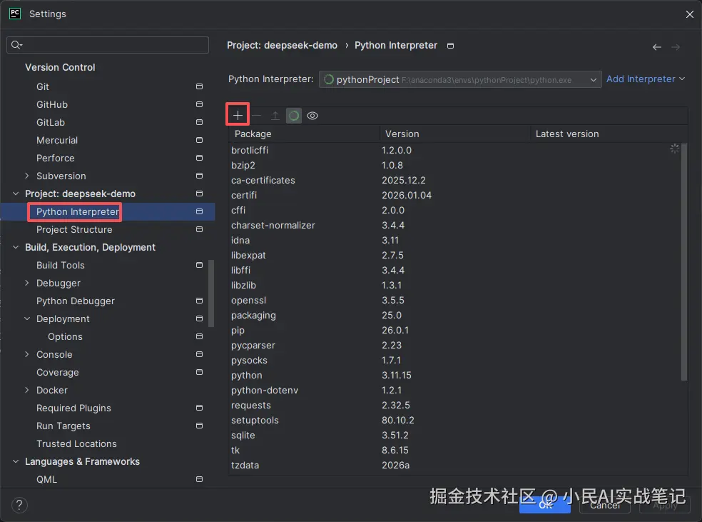 点击+号,搜索 requests,点击Install Package