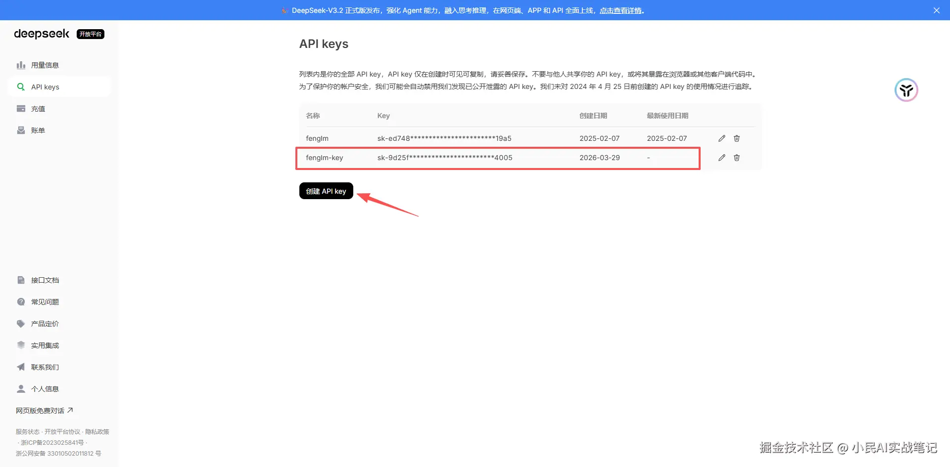 ⚠️重要提示: 这个密钥只显示一次,记得保存好!如果丢了,只能重新创建一个了