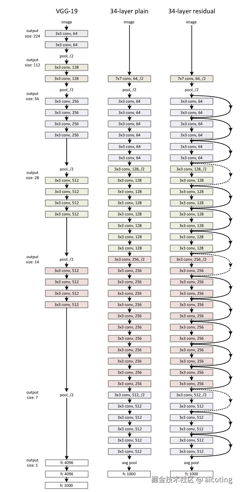 ResNet-50、101 等更深的版本采用瓶颈结构,但核心思想一致。