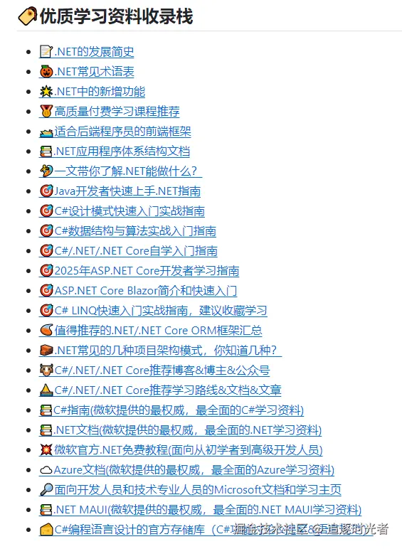 C#、.NET、.NET Core、WPF、WinForm、MAUI、Avalonia、Unity 等相关技术学习、工作路线集合,无论你是 .NET 初学者还是希望进阶的 .NET 开发者,都能在这里找到清晰的学习路线与实用资源。内容将持续更新,助力 .NET 开发者高效掌握技术要点,少走弯路,稳步进阶!
