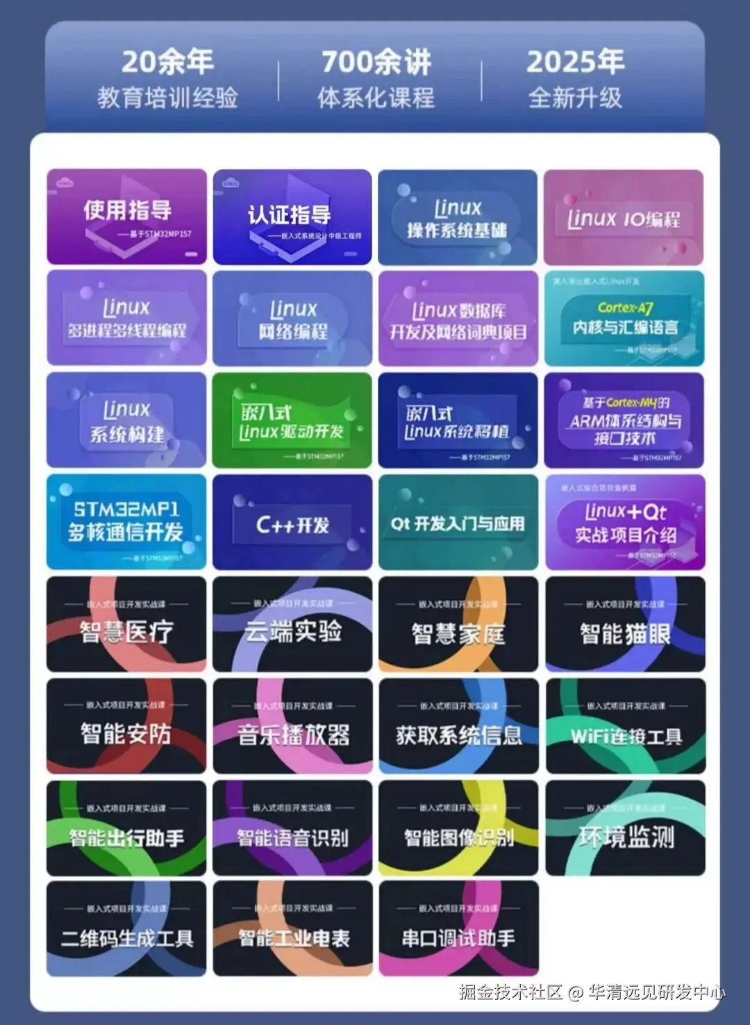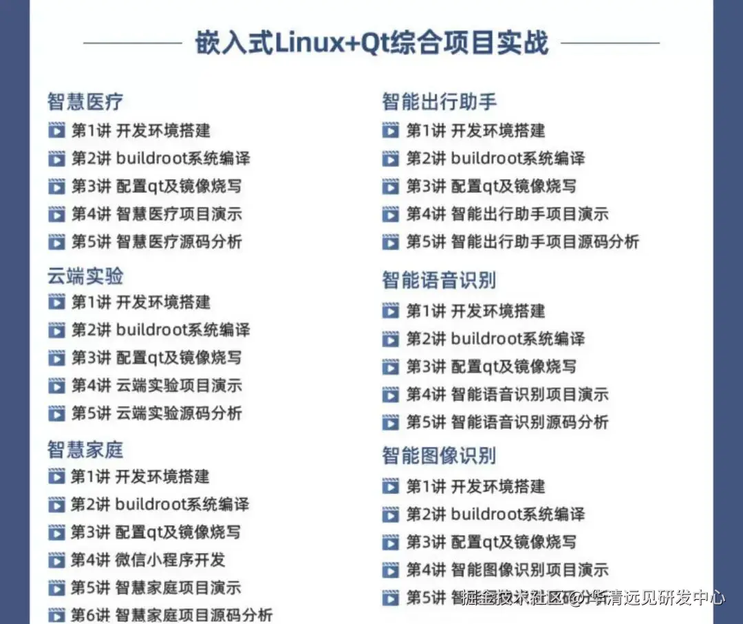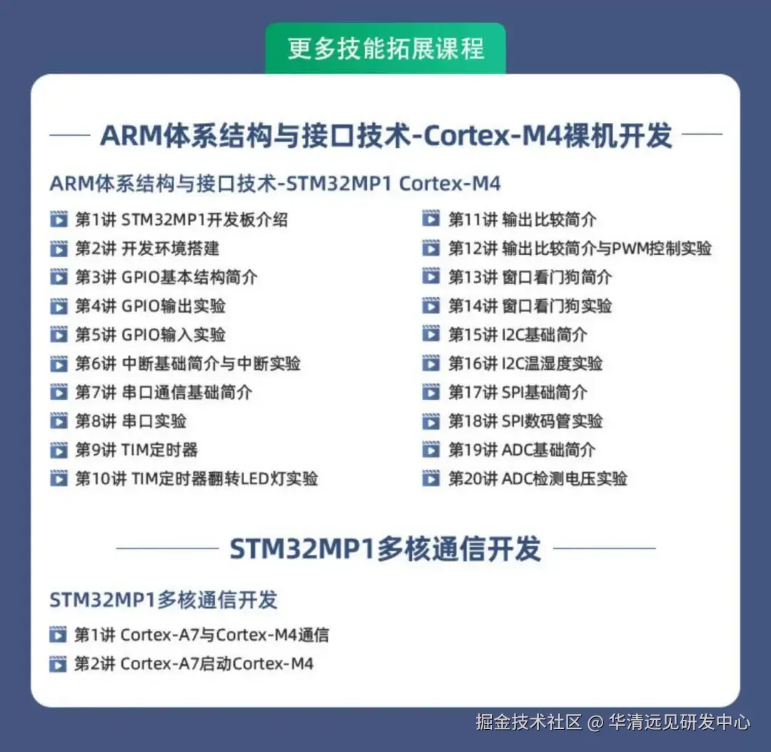为此,我们2025-2026持续升级嵌入式Linux课程,以 STM32MP157开发板为实战载体,打造711讲全流程课程,覆盖Linux基础、应用开发、ARM内核与汇编、Linux驱动、系统移植等核心模块,搭配10+横跨家居、医疗、安防、工业等领域的综合项目案例,从理论到实操全方位赋能。无论是零基础新手、有 STM32 基础的拓展学习者,还是高校师生用于教学毕设、竞赛认证,课程都提供配套教程、源码资源与专业答疑,让不同需求的学习者都能快速搭建技能体系、积累企业级项目经验,真正实现 “学会即能用、能用即高薪” 的学习目标。