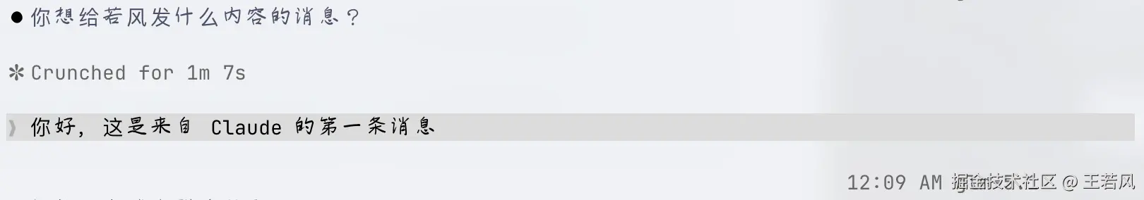 - 内容:@若风 你好,这是来自 Claude 的第一条消息