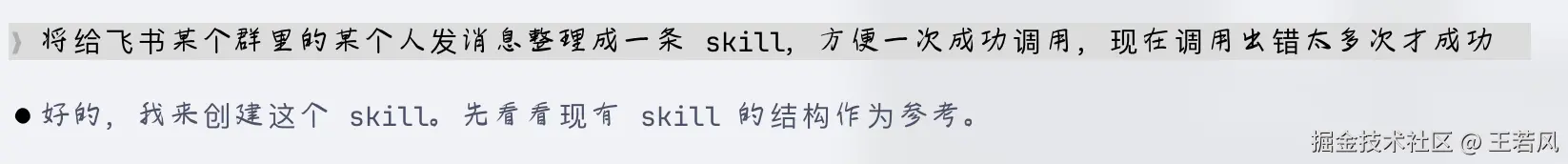 前面的调用链路太长了,我们优化一下,通过 Skill 提升调用的消息