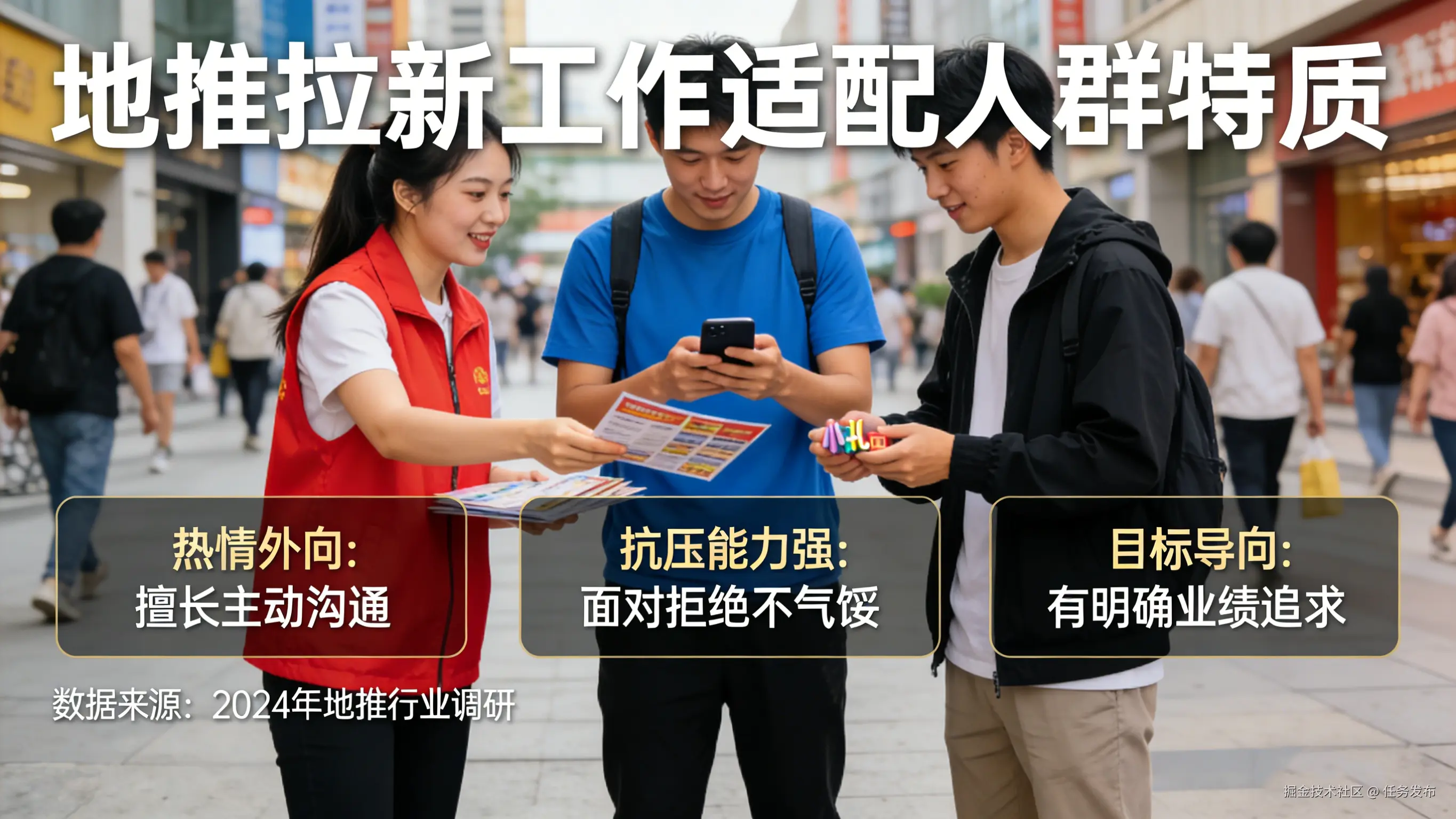 想入行做地推? 先别急着问“一天能赚多少”。 问问自己:我是不是干这行的料? 地推拉新,看着简单,就是发传单、聊两句。 其实门槛在心里,不在手上。 很多人干了三天就跑路,觉得太累、太丢人。 但也有人月入过万,做得风生水起。 差别在哪? 就在特质。 今天咱们就聊聊,到底什么样的人,最适合吃这碗饭。