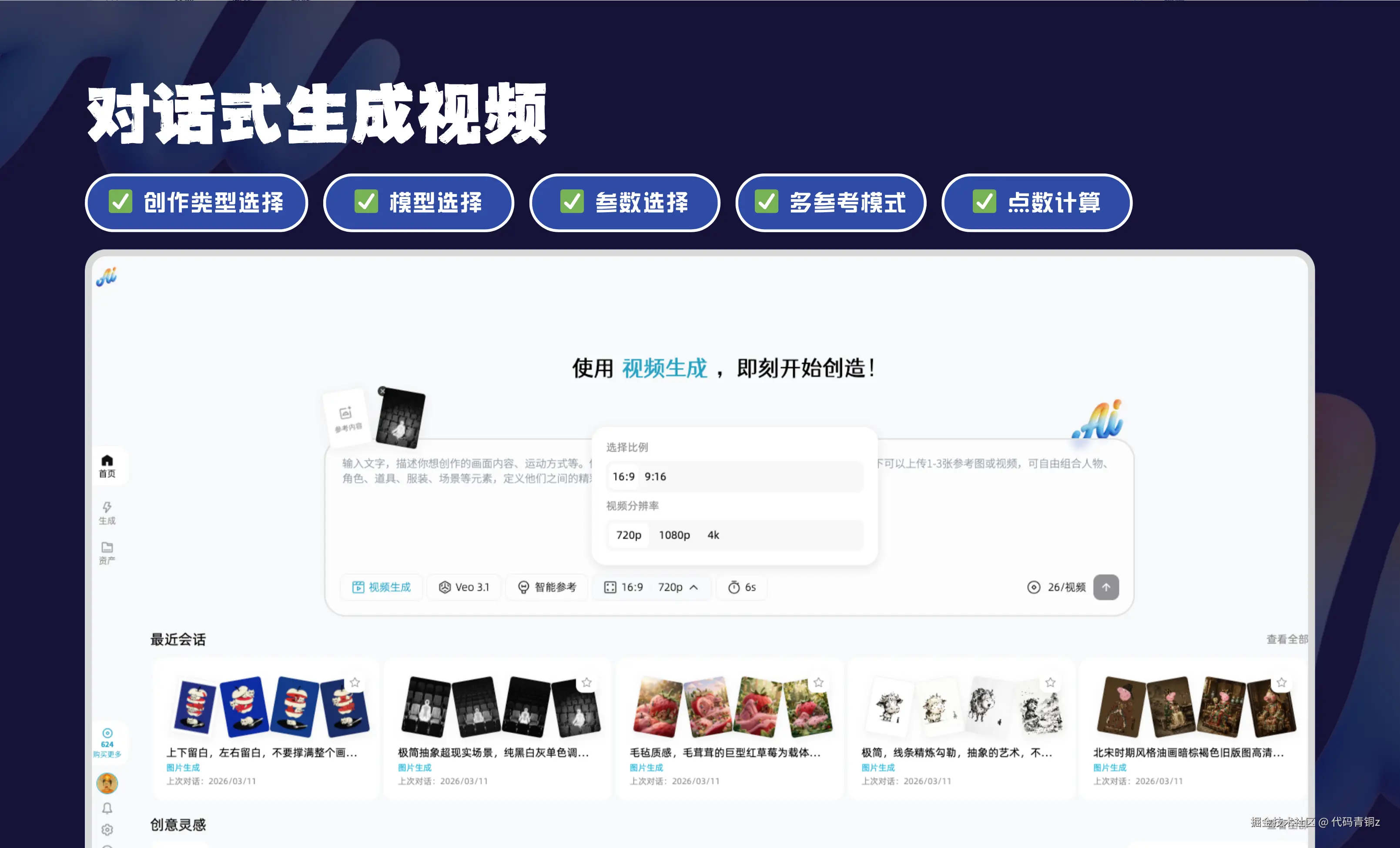 AI 创作工具站: 头像、壁纸、插画定制或营销视频自动生成。