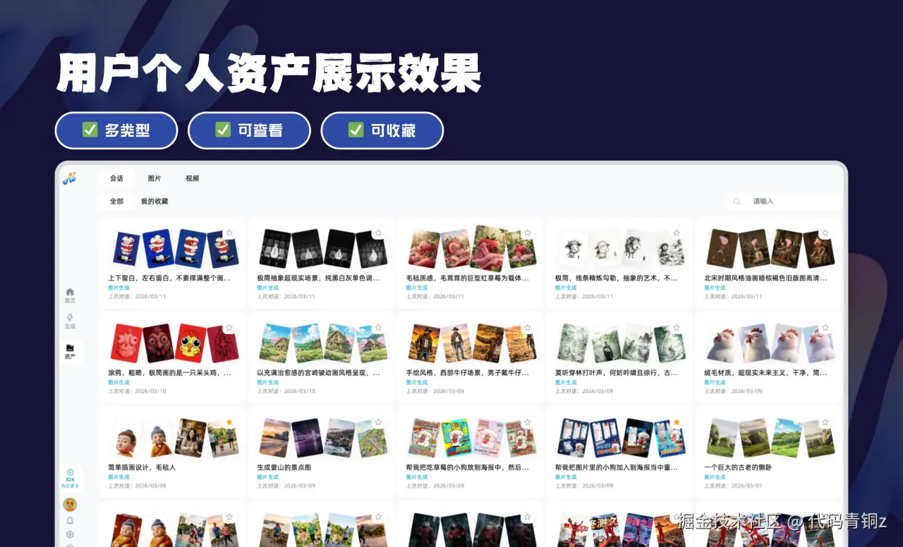 交互体验: 对话式生图/生视频模式,支持多轮对话、多张并发交互及实时消息流展示。