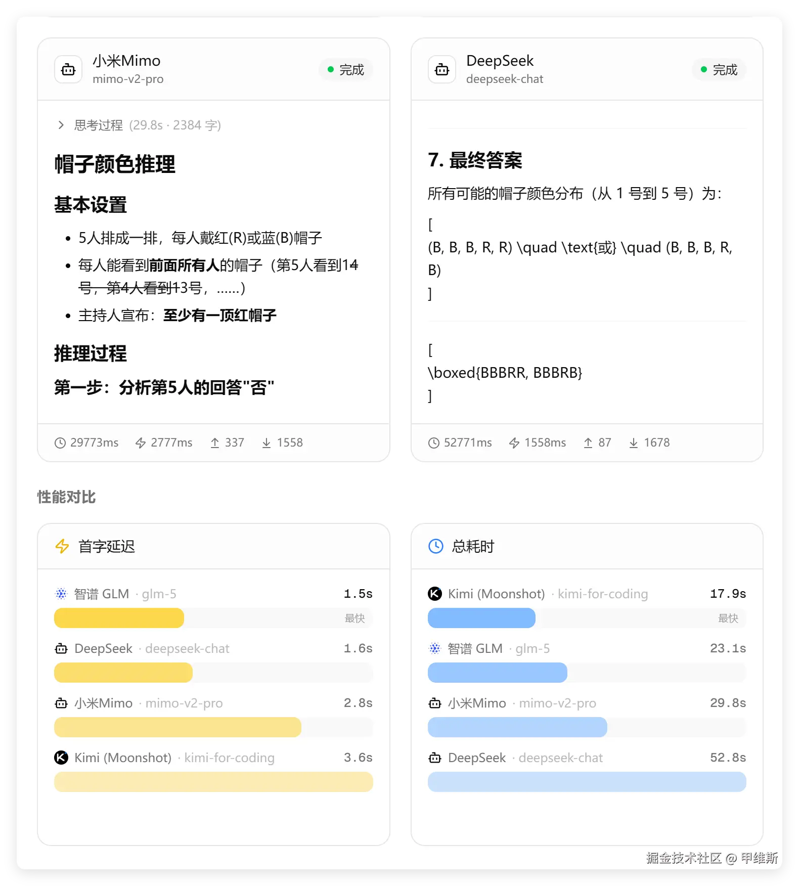 题目是回答出来了,但是耗时 120 秒,太久了。Kimi 只花了 20 秒,GLM 只花了 25 秒。