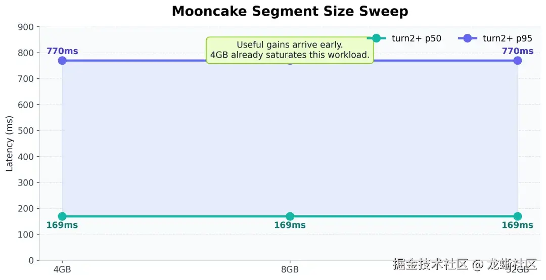 这说明一件很重要的事:Mooncake 的收益出现得很早。也就是说,它并不需要一个特别夸张的配置,才开始显现价值。对工程落地来说,这绝对是个好消息,因为它意味着: