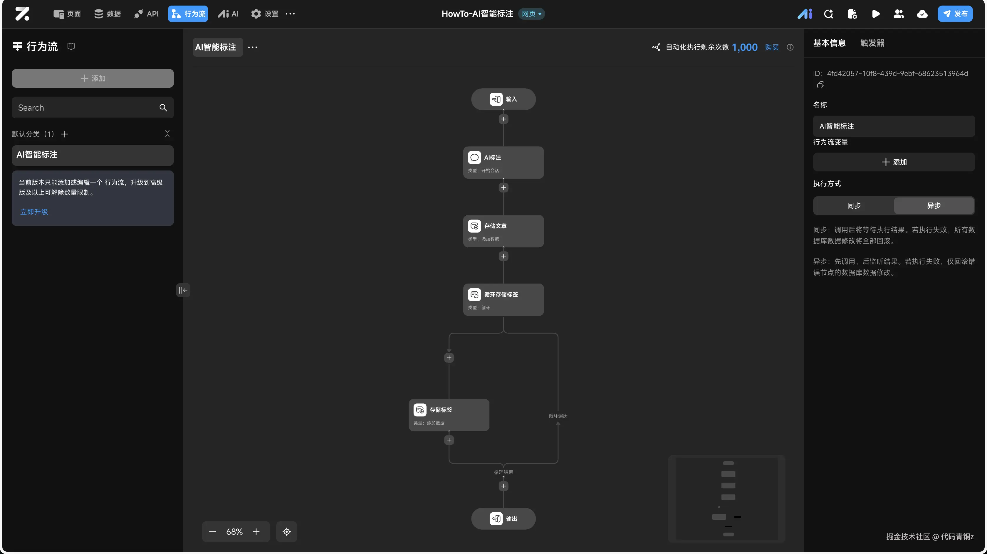 添加动作:调用行为流 -> 选择 AI智能标注。