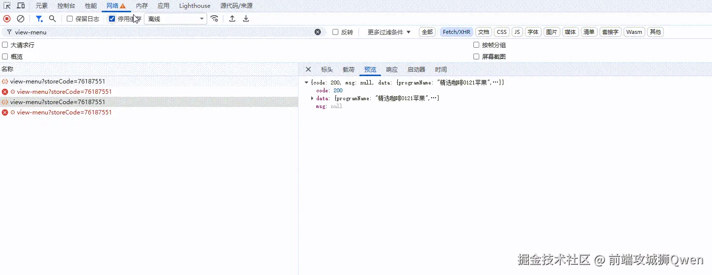 storemenu-api-cache返回唯一一条缓存。 - 前端用该数据填充