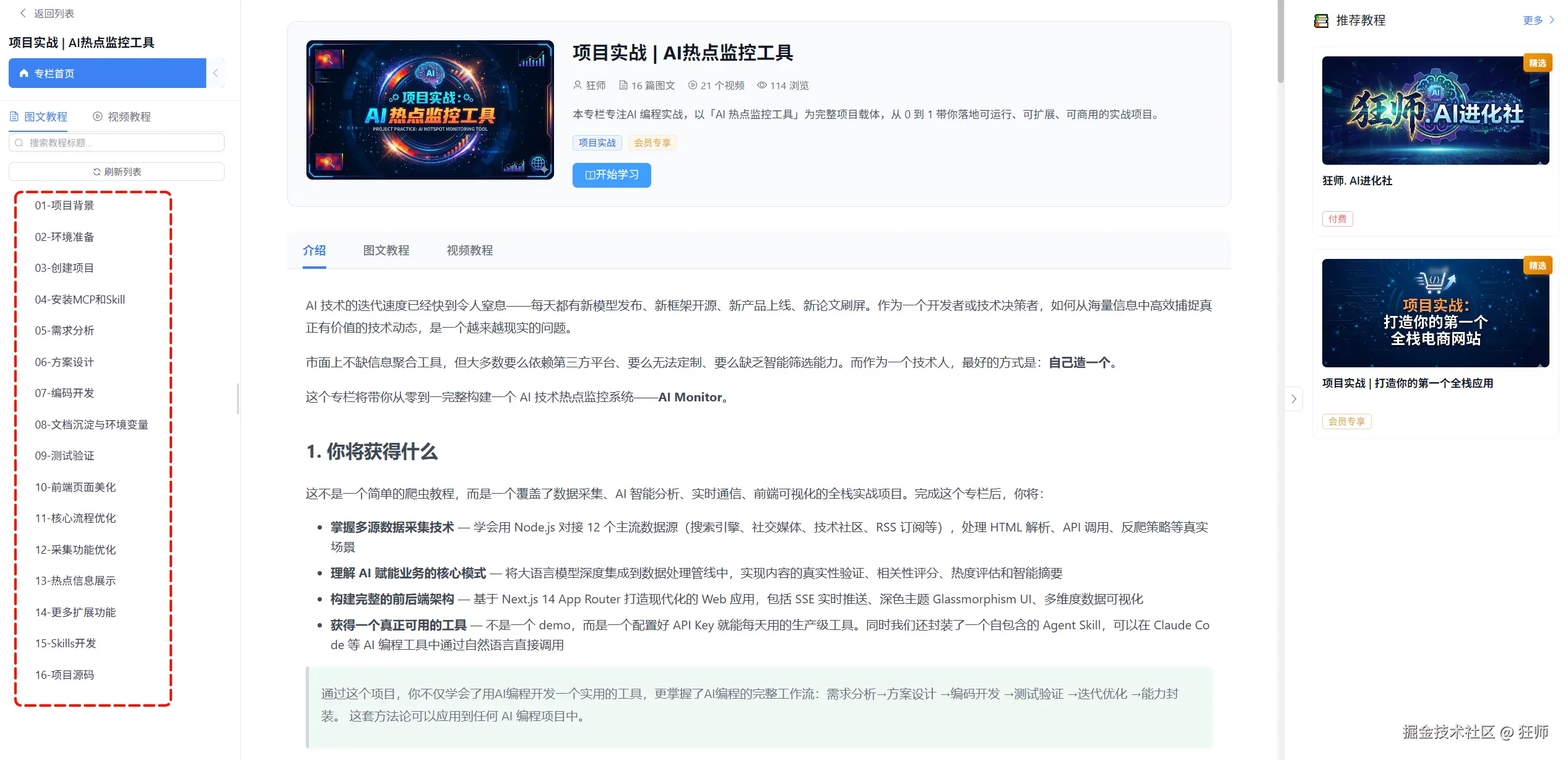 - 当前正重点推进 AI 编程项目实战 板块,第一轮规划内还将上线 1 个全栈应用项目,进行中。