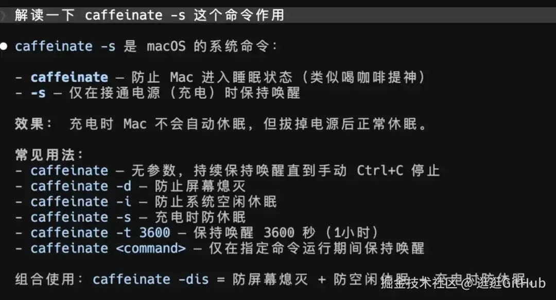 Mac 合盖默认会睡眠,但 macOS 自带一个命令叫 caffeinate,可以阻止系统睡眠: